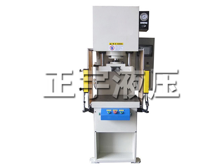 C型油壓機主要由床身、油缸、液壓系統、電器控制系統等零部件構成。床身主要由橫梁、筋板和鋼板壁構成,在設計時不但要考慮到結構簡單,更需要對橫梁筋板的受壓以及鋼板壁受拉進行強度校核;油缸主要由缸體、缸蓋、活塞活塞桿以及密封元件構成,設計時不但要進行嚴密的結構以及強度計算,更為重要的考慮油缸內的密封性能,這樣才能使之有效的工作。